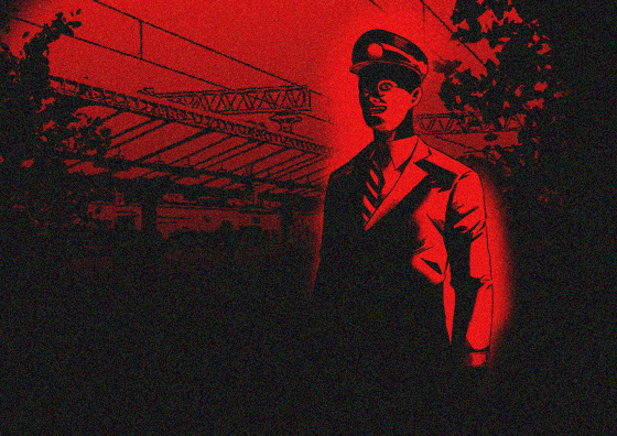 你在夜間來到車站,看到車掌一如往常在站崗。